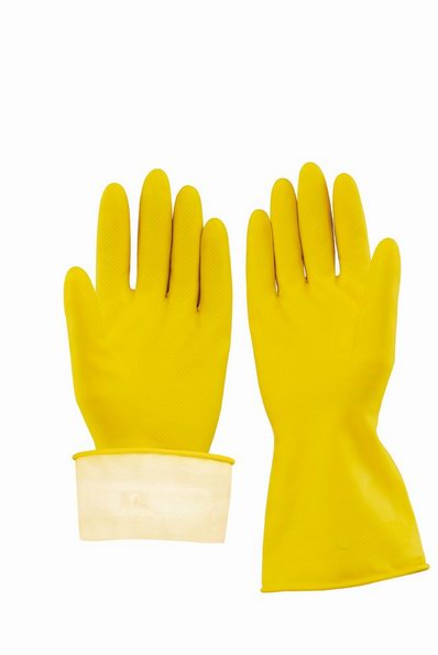黃色噴絨家用乳膠手套